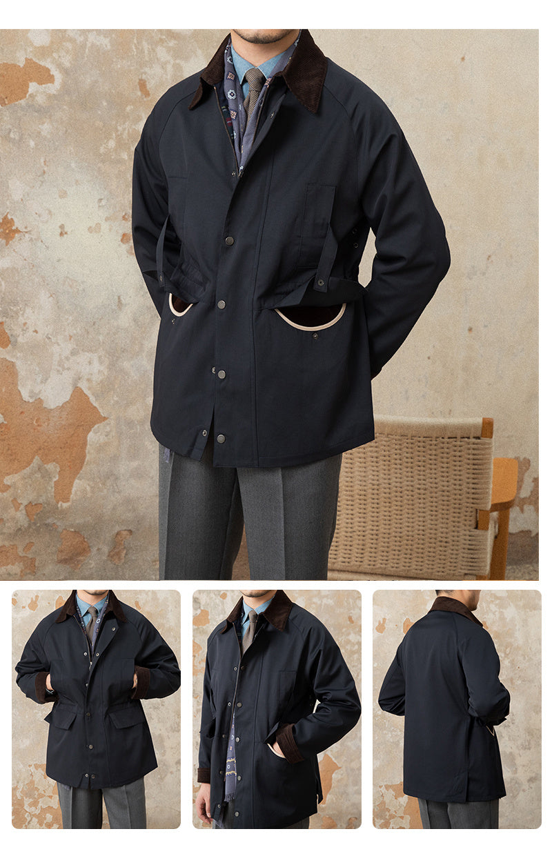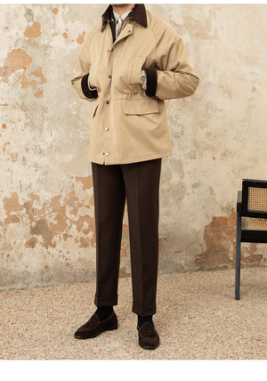 Retro Italian Corduroy Stitching Lapel Waterproof Jacket